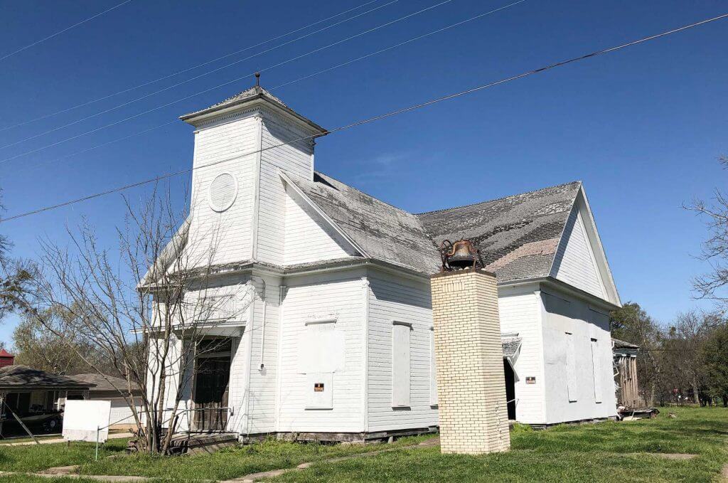When the South Italy school house was built the congregation carried on its work there and in 1890, transferred its activities to the building in Italy, Texas that has now been relocated to Founders Row in Midlothian, Texas. The building was completed the following year in 1891, and at that time, the church took the name, The First Christian Church of Italy, and was been known by that name until it moved to Founders Row and was shortened to The Old Church. Names of the original charter members include: the John Couch family, the Jim Couch family, the George Stroud family, the S. M. Dunlap family, the George Hamlett family, the Will Jennings family, the Willis Pruitt family, the Dr. A. B. Robuck family, the H. A. Erwin family and the Tom Johns family.